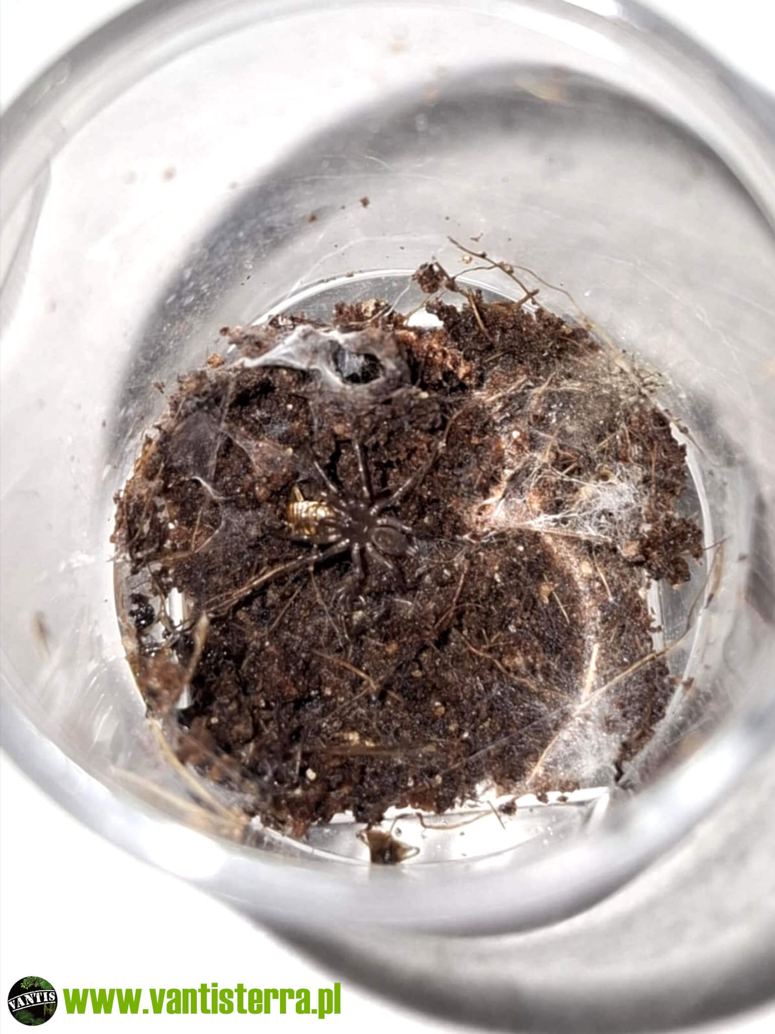 Zamieszkuję korzenie drzew lub przy pniach drzew. Niewielkich rozmiarów pająk. Nie jest to ptasznik.