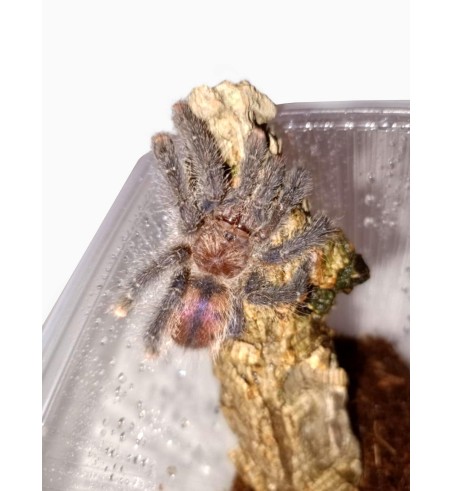 Nadrzewny ptasznik, świetnie się wspina i skacze. W świetle jego kolory mienią się na purpurowy