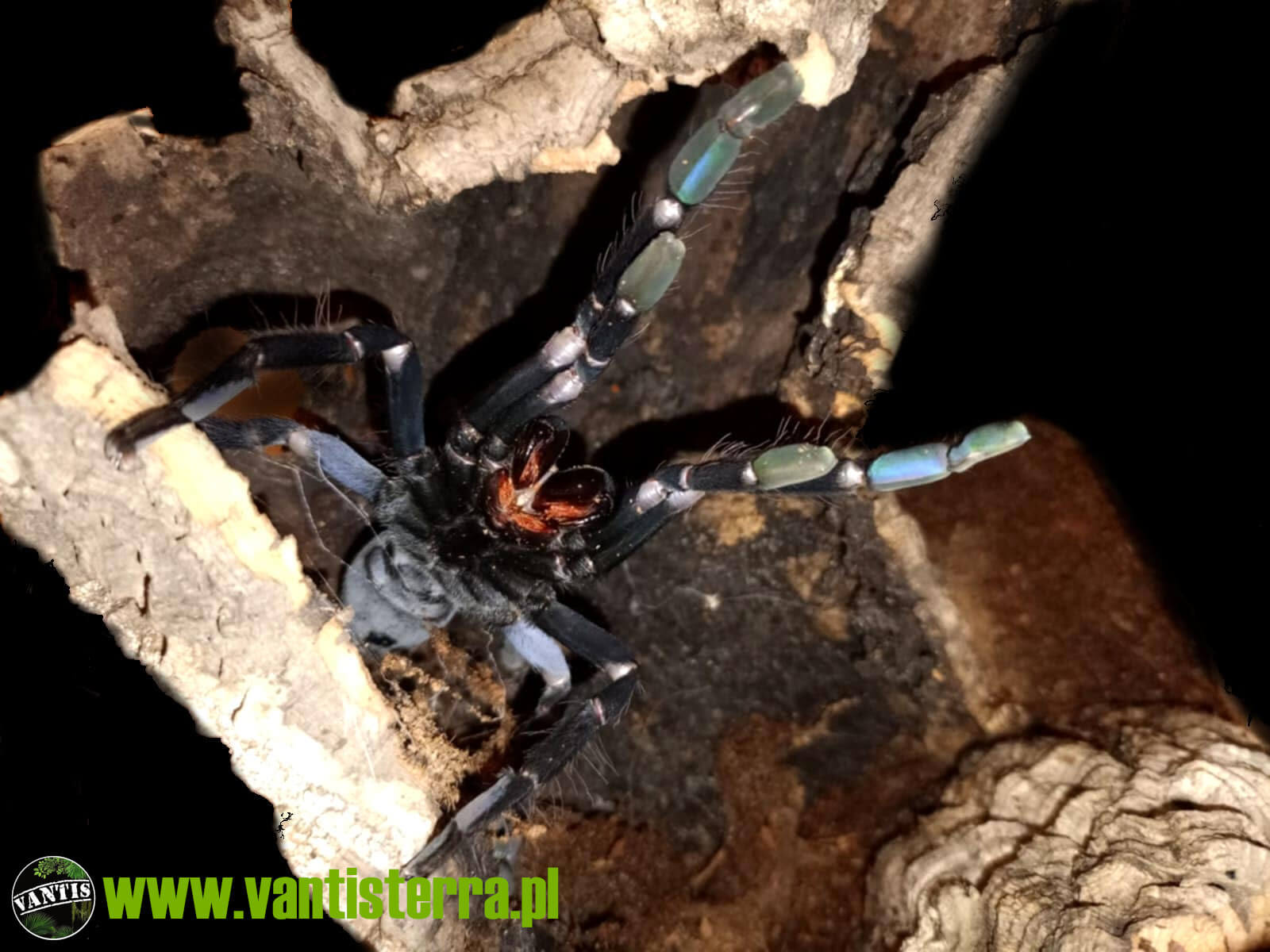 Pięknie ubarwiony nadrzewny ptasznik. Młode są w kolorze zielonym. Jak na tą rodzinę ptaszników...