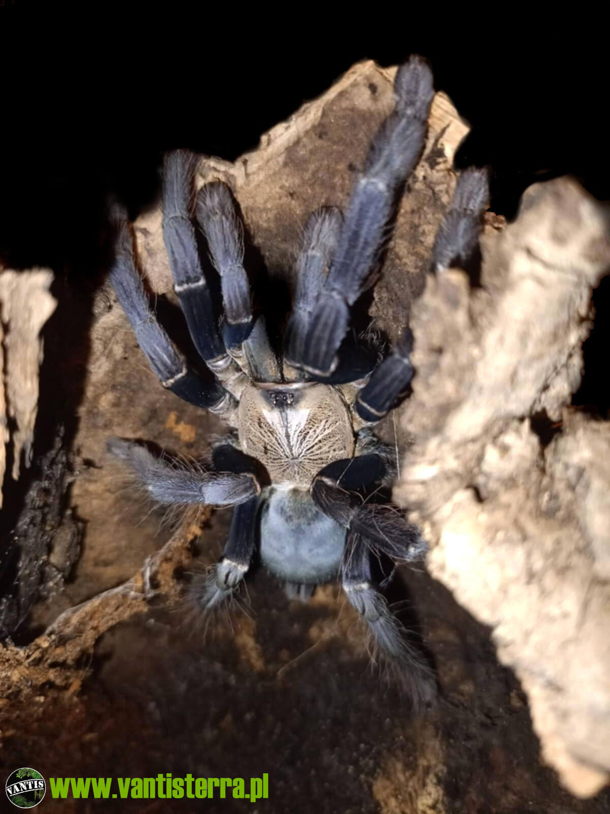 Ptasznik kobaltowy. Ptasznik azjatycki, ma ciekawe brązowo-niebieskie ubarwienie. Kopie nory....
