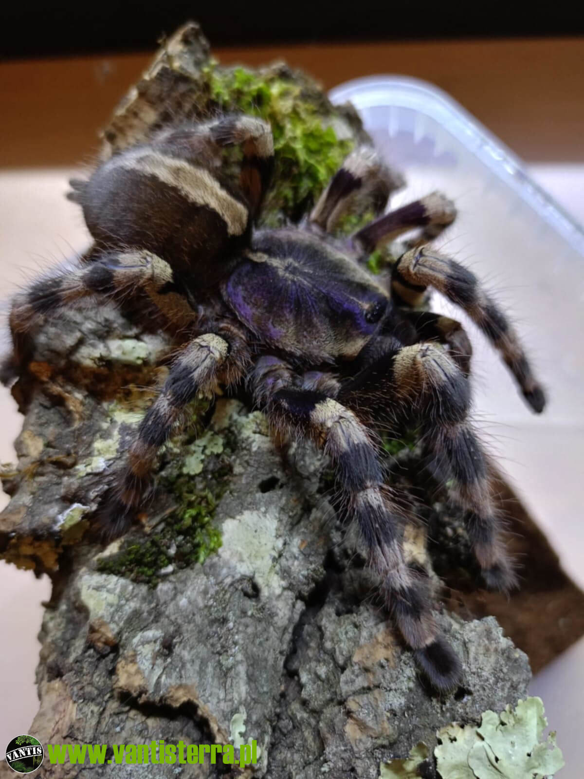 Pięknie ubarwiony nadrzewny ptasznik. Młode są w kolorze zielonym. Jak na tą rodzinę ptaszników...
