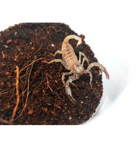Sporych rozmiarów skorpion o dość łagodnym usposobieniu. Lubi kopać norki w których zamieszkuję....