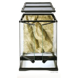 Terrarium wykonane z akrylu, cechuję się dużą lekkością i wygodną konstrukcją oraz doskonałą przejrzystością bez efektu załamywania się światła. Gładkie odporne na ścieranie ściany ułatwiają czyszczenie i zapobiegają osiadaniu się drobnoustrojów.